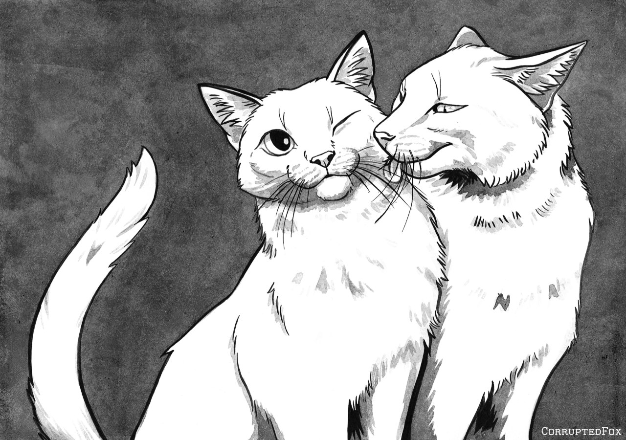 [Traditional] Two Cats In Art Portfolio Drawn with ink [Digital] Kaiten [Digital & Traditional] Xenia